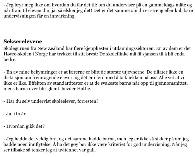 Dagsavisen brakte i går et intervju med John Hattie der han bl.a. sier: