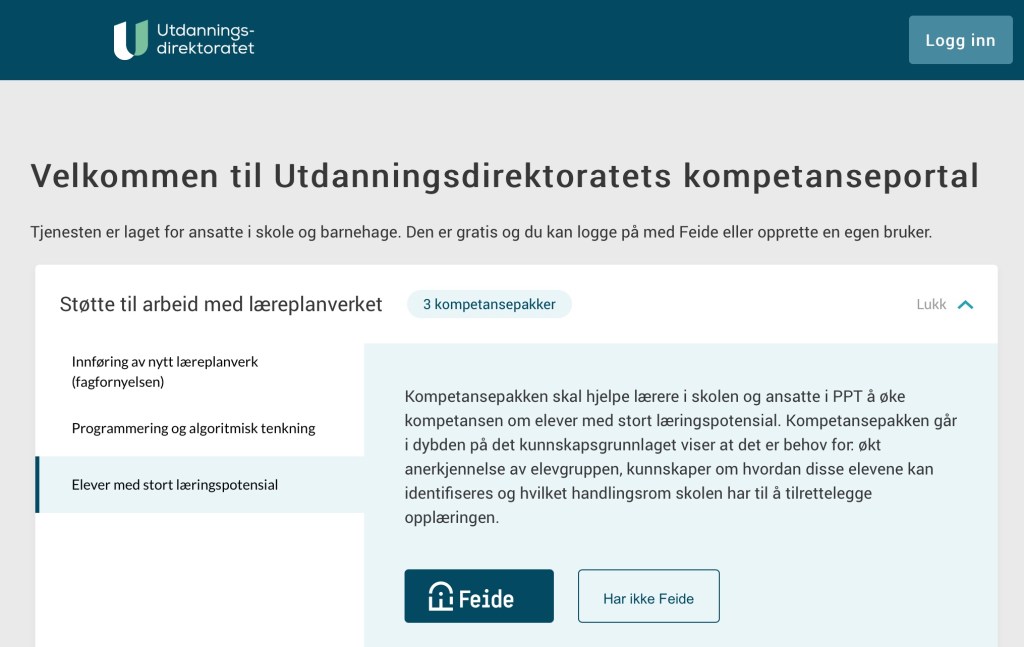 Kompetansepakken skal hjelpe lærere i skolen og ansatte i PPT å øke kompetansen om elever med stort læringspotensial. Kompetansepakken går i dybden på det kunnskapsgrunnlaget viser at det er behov for: økt anerkjennelse av elevgruppen, kunnskaper om hvordan disse elevene kan identifiseres og hvilket handlingsrom skolen har til å tilrettelegge opplæringen.